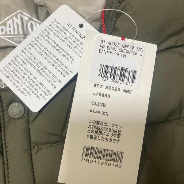 22FW DANTON 단톤 이너다운 경량패딩 재킷 / 34 - 46사이즈 : 긴자쇼핑